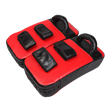 Designed to bring the maximum intensity to your workouts, these black and red weight pads are sturdy and long-lasting. The pads are built to withstand punishment while providing you with the optimum in comfort and safety. These pads with their dense padding and durable stitching can take a beating! The adjustable strap ensures a secure grip.