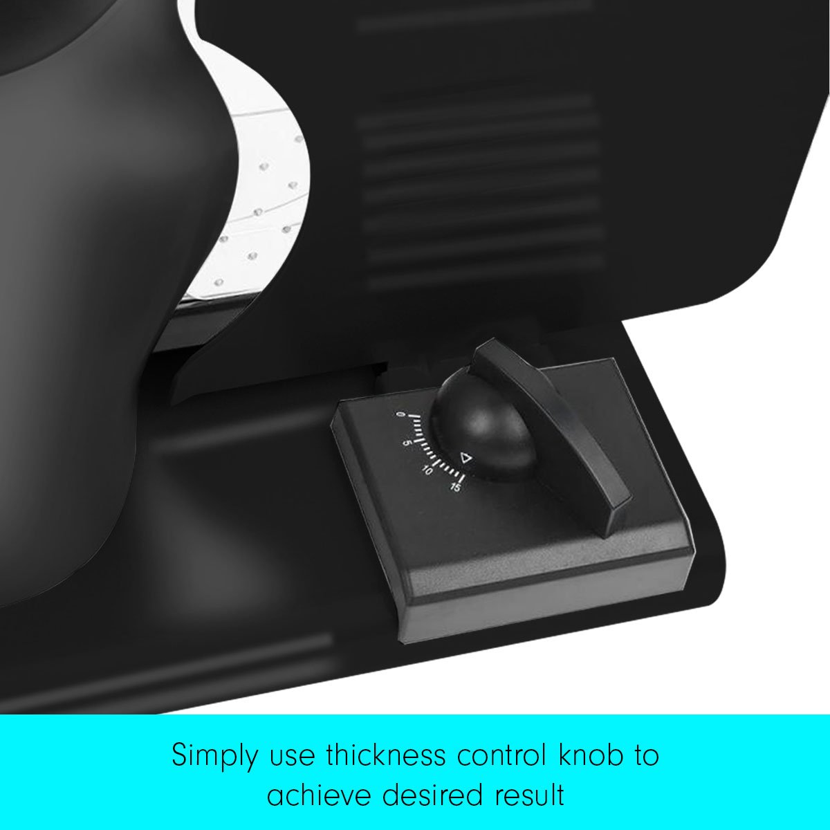 A convenient adjustable dial lets you choose from ultra-thin slices to more substantial thicker cuts.