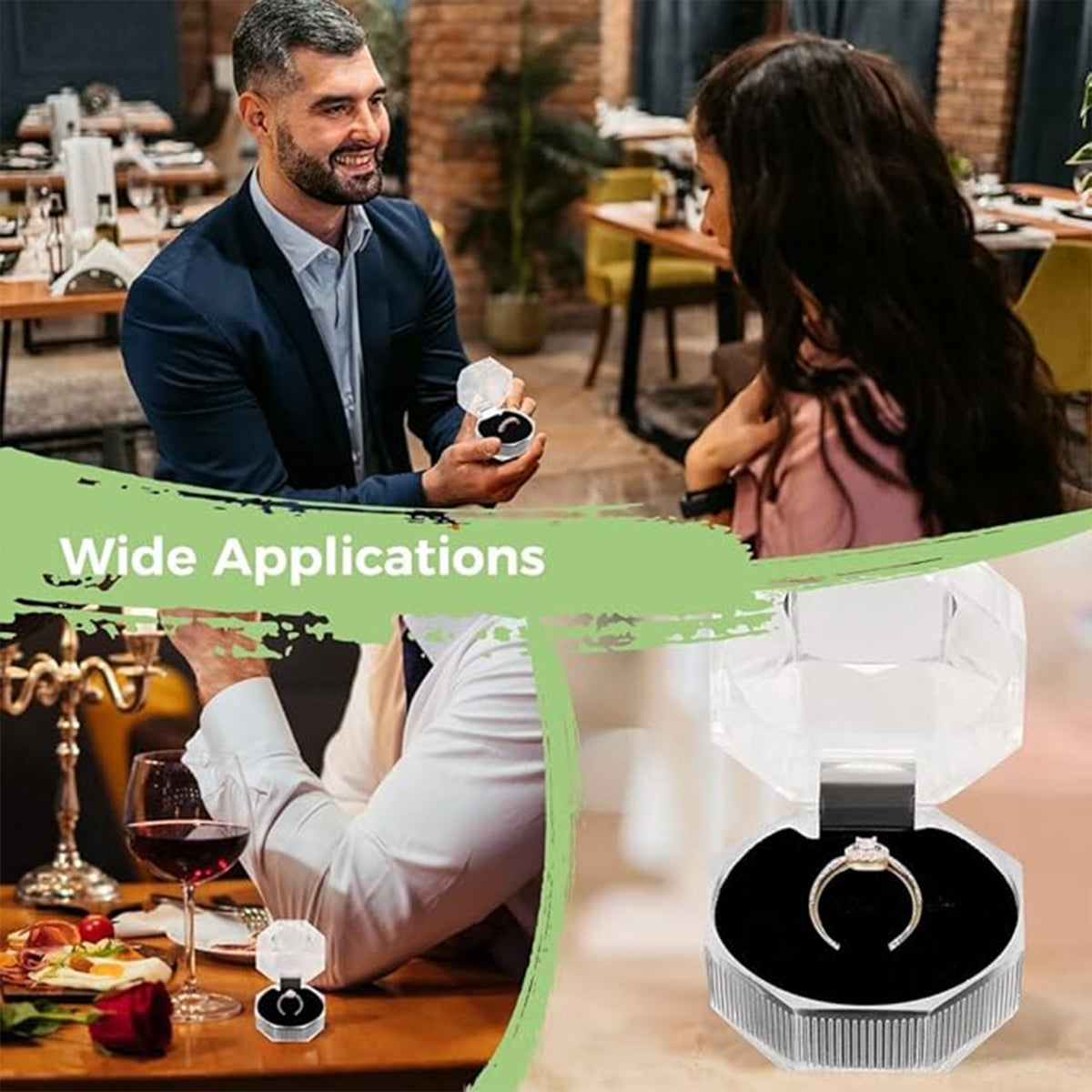 This set of transparent octagonal jewelry boxes is perfect for displaying and storing rings, earrings, and other small jewelry pieces. Made from high-quality acrylic material, these boxes offer both elegance and durability. Each box features a soft foam insert to securely hold your precious items, preventing them from moving around. Available in two elegant colours, these boxes add a touch of sophistication to any jewelry collection or retail display.