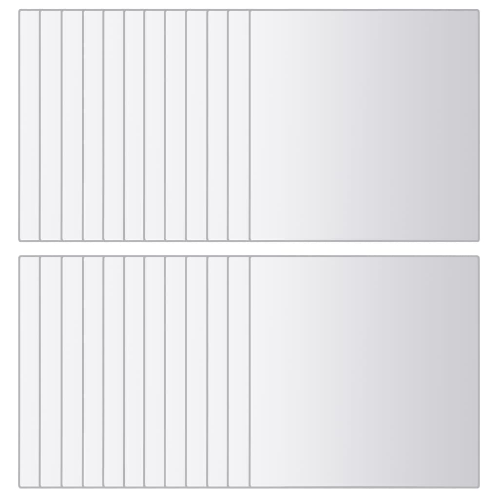 This set of frameless mirror tiles can be arranged in a variety of patterns of your choice. Adding mirrors to any living space will not only make a decorative statement, but also bring more light and a spacious effect to the room. These mirror tiles are made of high-quality glass which makes them relatively durable and highly reflective. The clean-cut, frameless design looks fantastic in any contemporary home and will enhance the brightness of the room and increase the sense of space. You can stick these mirror tiles to the wall by using the included stickers. Delivery includes 24 mirror tiles and 96 adhesive strips.