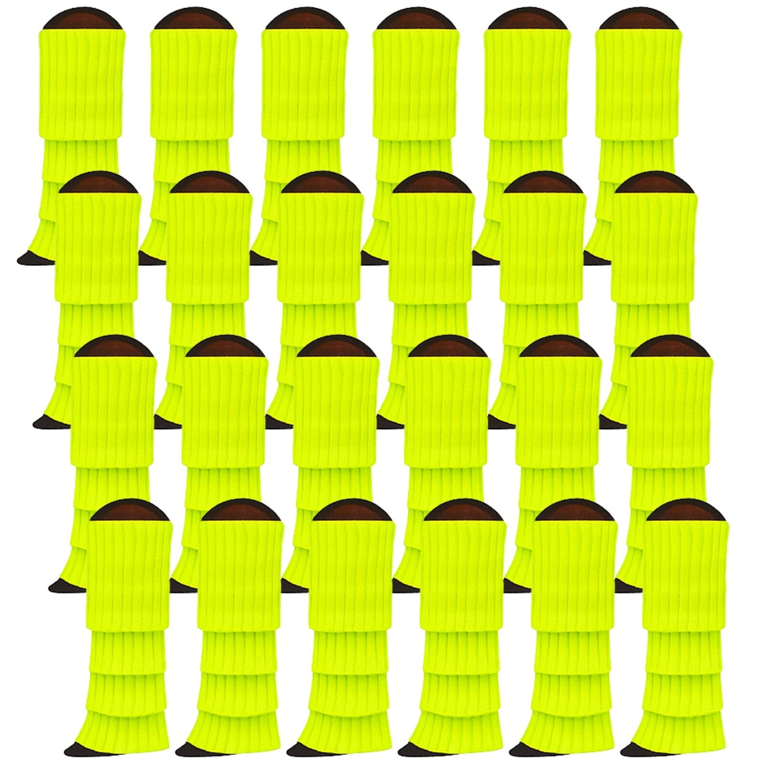 24x Womens Leg Warmers Disco Winter Knit Dance Party Crochet Legging Socks Costume - Fluro Yellow