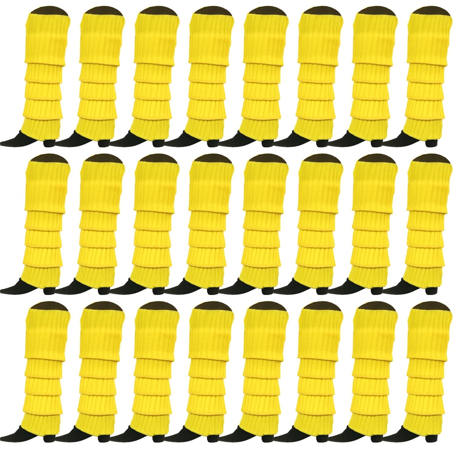 24x Womens Leg Warmers Disco Winter Knit Dance Party Crochet Legging Socks Costume - Yellow