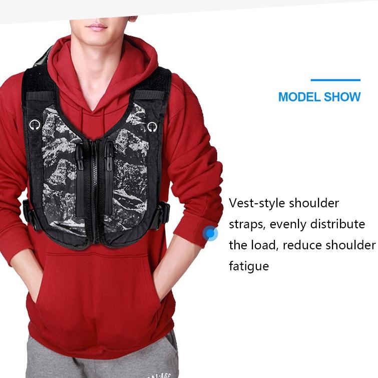 • Vest-style shoulder straps for even weight distribution and reduced shoulder fatigue