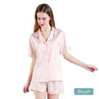 Embrace relaxation and style with our luxurious 2pc satin short women pajamas set in a stunning blush hue. Crafted from 100% polyester, this pajama set delivers an exquisite feel against your skin, ensuring you look and feel fabulous at home.