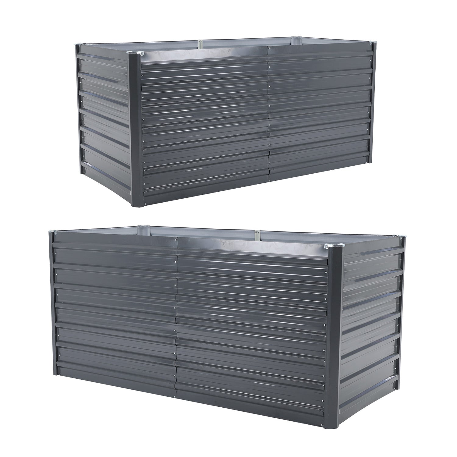 Home Ready 2 Set 2-in-1 Raised Garden Bed Galvanised Steel Planter Grow Veggie Plant Flowers 320 x 80 x 77cm - Grey