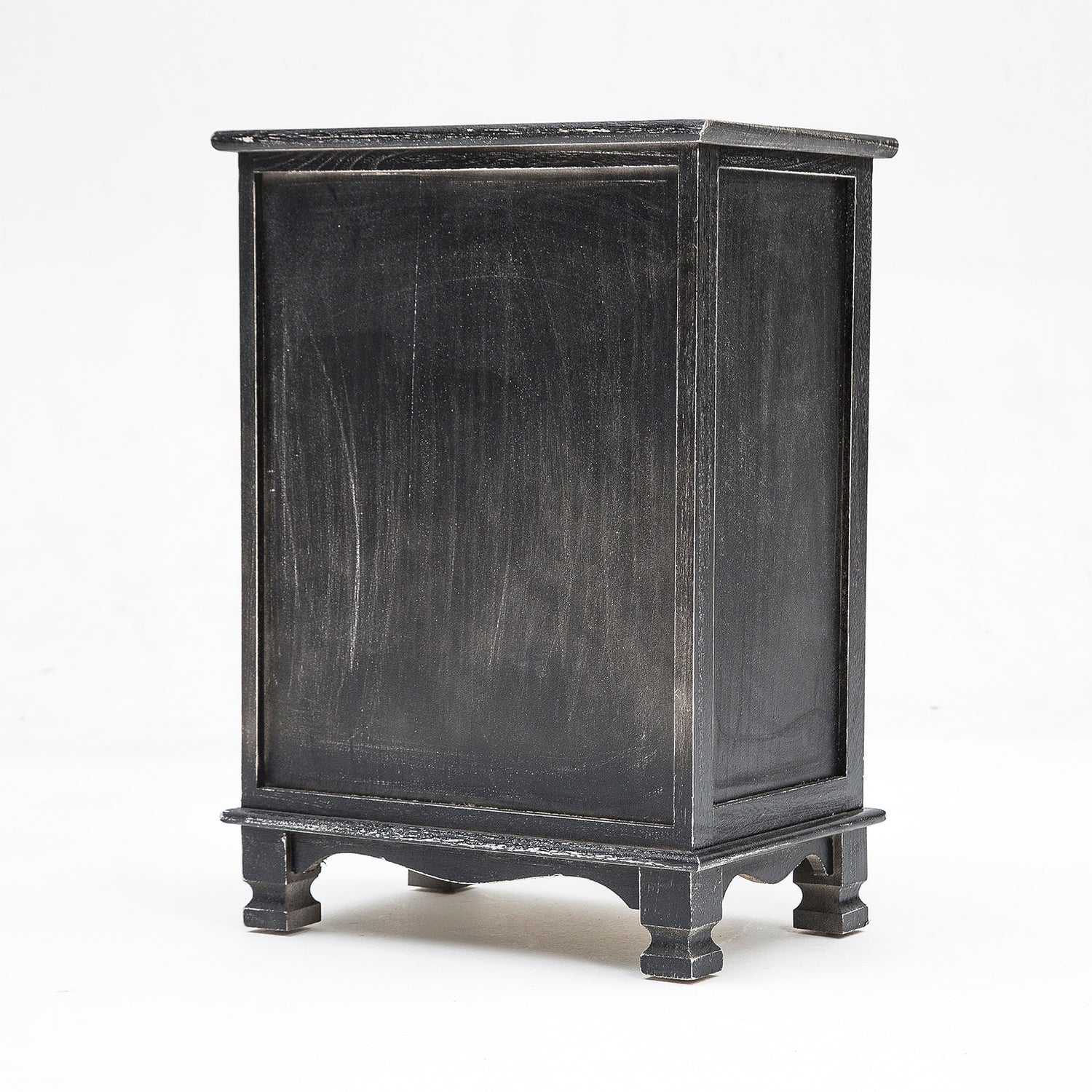 Enhance your interior décor with the elegant vintage charm of the CLARA BLACK bedside table. Its classic black finish and timeless design make it the perfect pick for bedrooms seeking a touch of sophistication. Whether your taste is modern, traditional, or eclectic, this side table offers a versatile look that blends seamlessly into any setting. Buy side table options like the CLARA BLACK to effortlessly add style and character to your space.