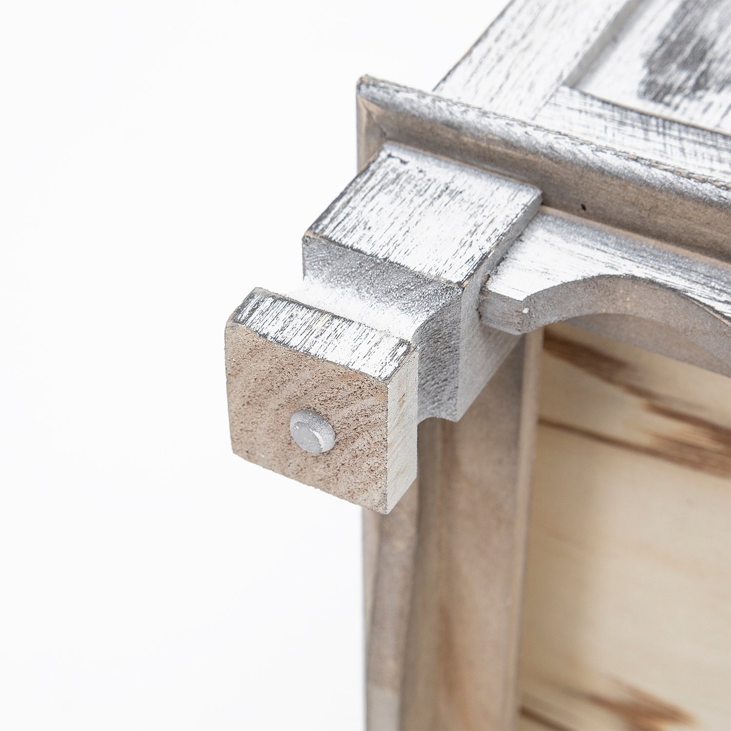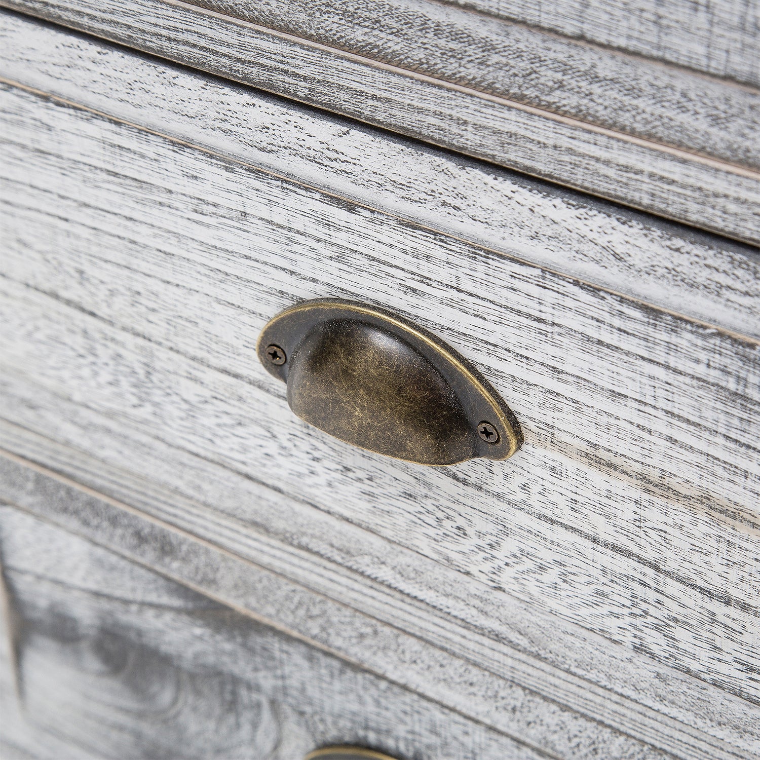 Integrated metal hardware enhances the side table’s functionality, providing smooth opening and closing for each of the three spacious drawers. These metal accents complement the vintage design and ensure reliable performance over time.