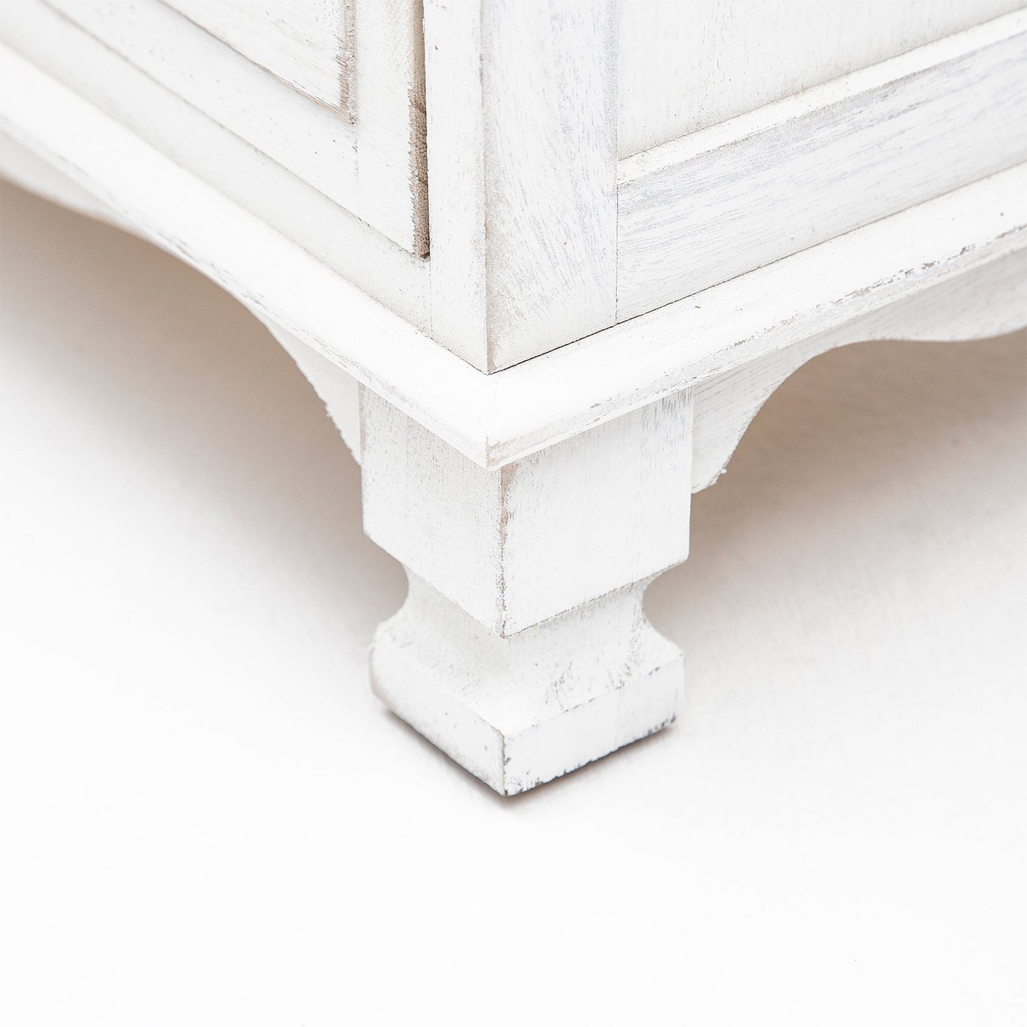 This side table works well next to a sofa or armchair. Use it as a handy spot for lamps, decorative pieces, or to keep remotes within reach. The vintage design and classic white tone easily complement a variety of décor styles, making it an appealing option for those who wish to Buy Side Table Online for their living area.