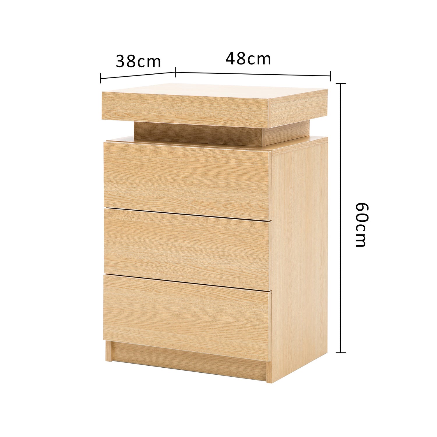 La Bella 2 Set Bedside Table 3 Drawers RGB LED Bedroom Cabinet Nightstand Gloss GLORY - Oak