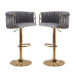 2x Height Adjustable Grey Swivel Bar Stool Velvet Golden Round Base Barstools Chairs