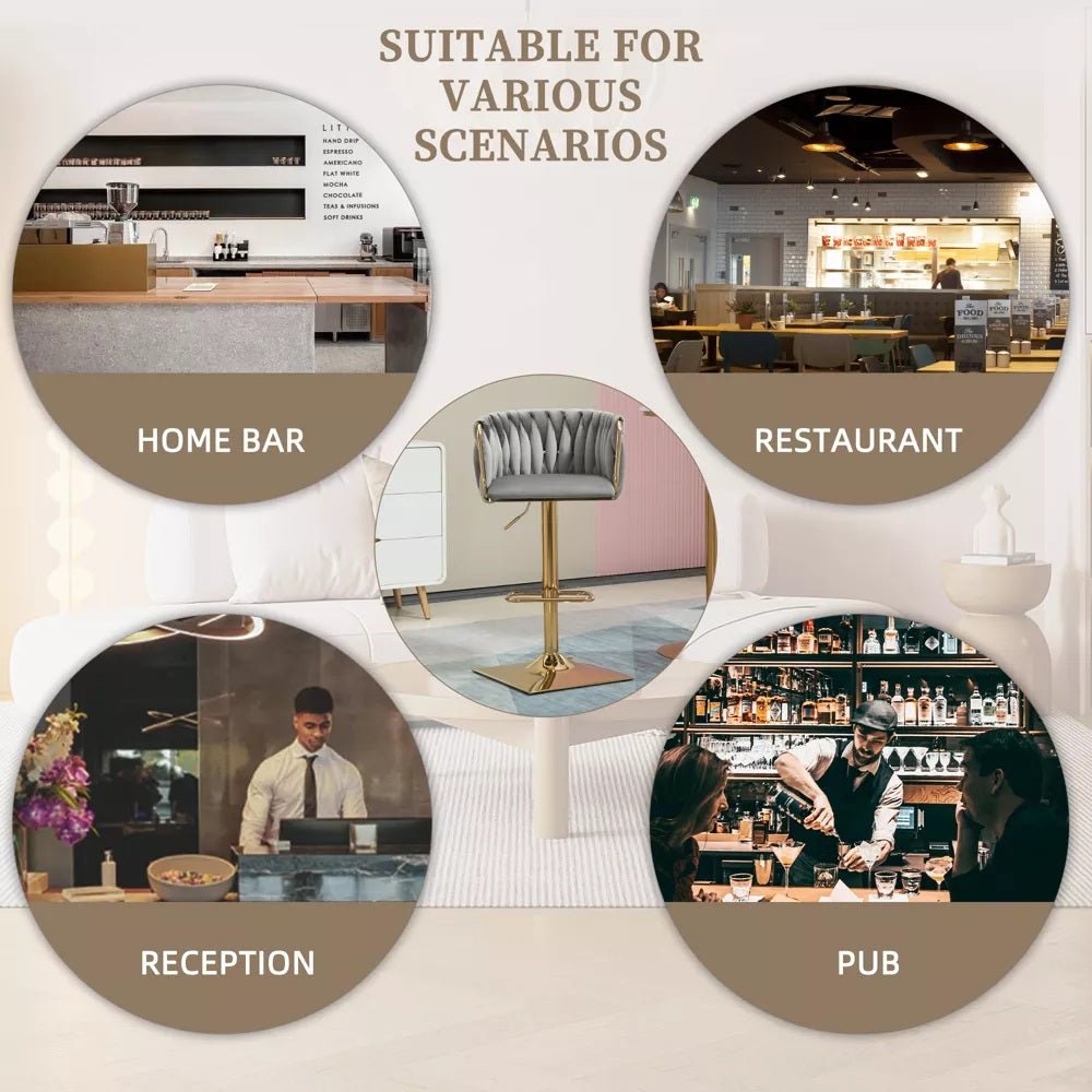 【WIDE APPLICATION】These velvet bar chairs have special woven backrest and golden finish, which is modern and elegant for kitchen, cafe, pub, etc. Meanwhile, you can install these stools effortlessly with detailed instruction and all parts we provide.