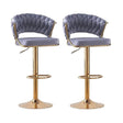 2x Height Grey Velvet Padded Golden Round Base Barstools Chairs