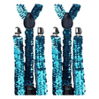 Dual Pack Adjustable Blue Sequin Men's Suspenders - Elastic Clip-On Braces for Formal Events