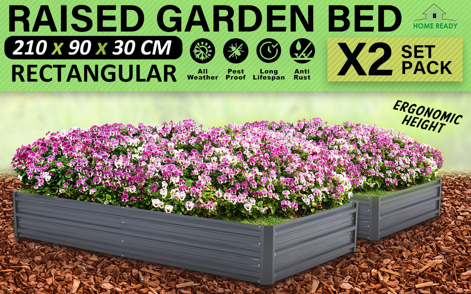 Home Ready 2 Set Raised Garden Bed Galvanised Steel Planter Grow Veggie Plant Flowers 210 x 90 x 30cm - Grey