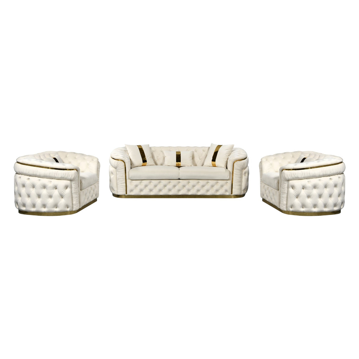3-1-1 Seater Sofa Set Beige Velvet Fabric Solid Wood construction Gold Stainless Steel Trim