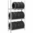 These tyre shelves are excellent choices for garage storage, providing plenty of space to keep your tyres neatly organised. Sturdy frame: The tyre shelf consists of a steel frame. The steel frames guarantee sturdiness and stability.Strong load capacity: Thanks to the thick material, a reinforcement bar for each layer and boltless shelving design, the rack has a supreme load capacity.Flexible storage: The layers are height adjustable. Thus, the tyre shelf provides ample storage space for different size tyres you want to store and always keeps your space neat and well-organised.Multiple usage: The shelf rack is suitable for many situations, such as garage, warehouse, workshop and basement. Warning:To prevent it from tipping over, this product must be used with the wall attachment device (not provided).