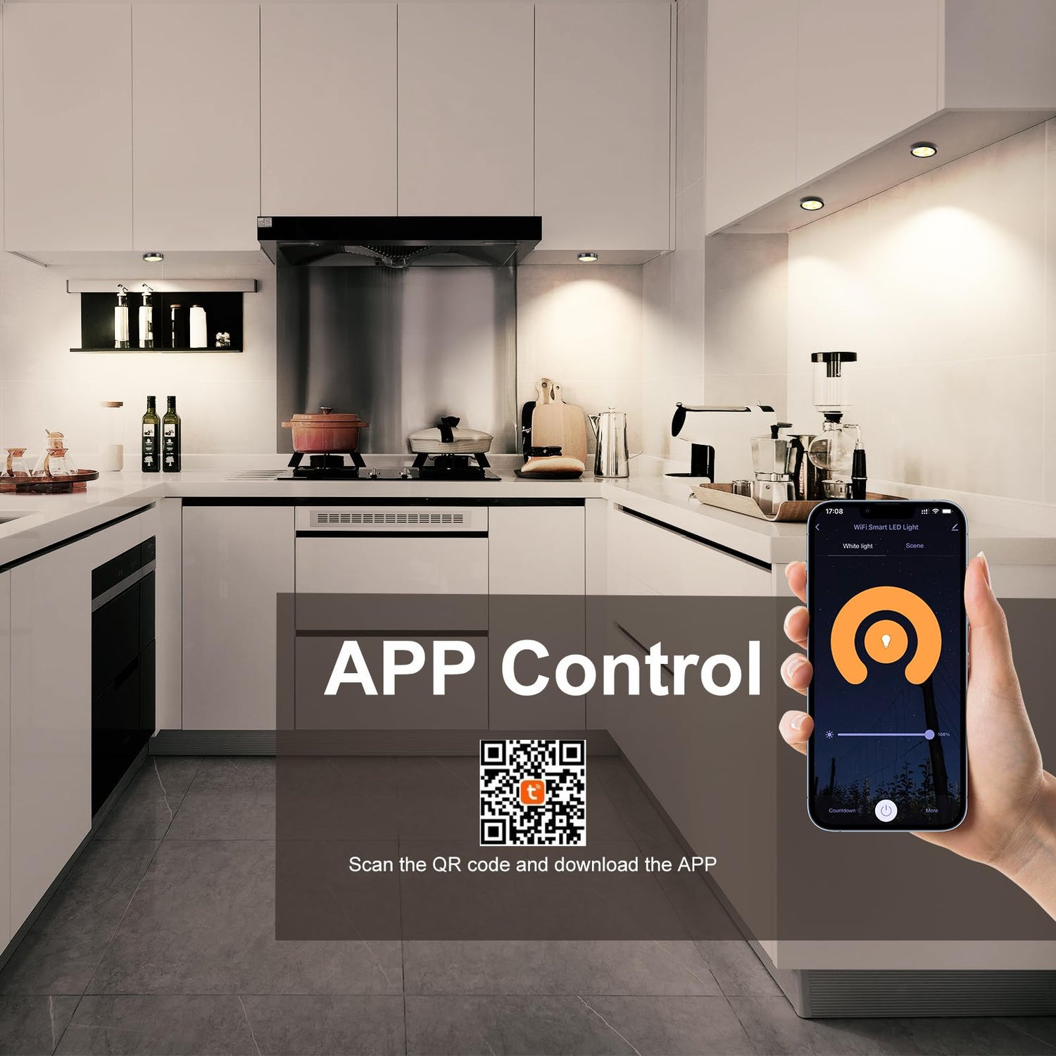 - APP Control:You can control the smart puck light through APP (Tuya Smart), you can switch puck light on and off by voice control. APP also supports adding family members to control the plug in puck lights. You can also put multiple devices in a group and adjust the lighting at the same time.