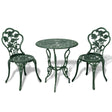 This stylish bistro set will add a luxurious touch to any dinner. It will be a great pleasure to chat with your friends or have a cuppa while relaxing on this decorative yet functional garden furniture set. The bistro set is made of high-quality cast aluminium, which is weather-resistant and highly durable. The cast iron legs add to the sturdiness of the set. The detailed floral pattern will give any garden, patio or conservatory a romantic touch. Delivery includes 1 round table and 2 chairs.