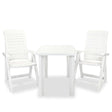 This weather-resistant bistro set will be a great choice for al fresco dining in the garden, on the patio or at the campsite. The garden table has an umbrella hole so that you can use it with an umbrella and keep cool in the shade. The chairs' backrests have 4 reclining settings, so you can always find the most comfortable position. The chairs can be folded to save space when not in use. The set is made of durable plastic, making the table and chairs weather resistant and easy to clean. This outdoor dining set is also lightweight, which makes it easy to move around. Delivery includes 1 table and 2 folding chairs.