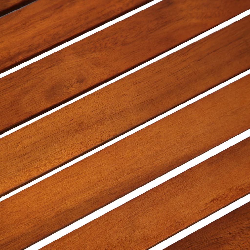 Our stylish rattan bistro set will become the focal point of your garden, balcony or patio! This rattan dining set, with an elegant design, will be a great choice for al fresco dining or relaxing. The powder-coated steel frames make the table and chairs strong and sturdy, and thanks to their lightweight constructions, all items are easy to move. Thanks to the weather-resistant and waterproof PE rattan, the dining set is easy to maintain. The acacia hardwood tabletop with a natural oil finish is easy to clean with a damp cloth. The thick, soft, foam-filled seat and back cushions are highly comfortable and made of water-repellent polyester. The removable and washable covers are equipped with zips. Delivery includes 1 table, 2 chairs, and 4 cushions. Note: We recommend covering the set in the rain, snow and frost.