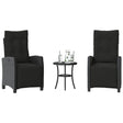Enjoy a coffee or have a chat with your family and friends in the garden, backyard, or on the balcony with this comfortable bistro set! Durable material: PE rattan, also known as poly rattan, is a strong, low-maintenance synthetic material that looks like natural rattan. It's lightweight, easy to clean, and commonly used for outdoor furniture due to its durability and weather-resistant properties.Adjustable backrest and footrest: This garden seat has a handle. You can adjust the backrest and footrest to any position by pulling the handle, and quickly return them to their original positions. Comfortable seat experience: This outdoor furniture set, complete with thickly padded cushions, offers a comfortable seating experience.Removable and washable cover: These seat cushions feature removable covers for easy washing and maintenance.Robust and stable frame: The powder-coated steel frame ensures that the garden furniture is strong and stable for daily outdoor use. Good to know:To make sure your outdoor furniture stays beautiful, we recommend protecting it with a waterproof cover.