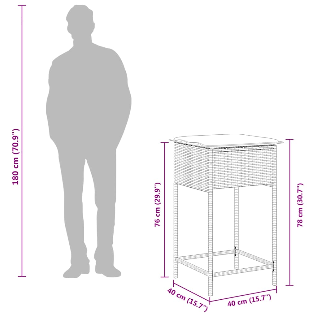 This trendy garden bar set, combining both style and function, is surely meant to be the centrepiece of your garden, patio, and any other living space. Durable material: PE rattan, also known as poly rattan, is a strong, low-maintenance synthetic material that looks like natural rattan. It's lightweight, easy to clean, and commonly used for outdoor furniture due to its durability and weather-resistant properties.Comfortable seat experience: This outdoor furniture, complete with thickly padded cushions, offers a comfortable seating experience.Removable and washable cover: These seat cushions feature removable covers for easy washing and maintenance.Robust and stable frame: The powder-coated steel frame ensures that the garden furniture is strong and stable for daily outdoor use. Good to know:To make sure your outdoor furniture stays beautiful, we recommend protecting it with a waterproof cover.