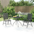 This trendy garden dining set, featuring an elegant and contemporary design, is a perfect choice for relaxing in your garden. Sturdy material: Steel is an exceptionally hard and strong material. It offers sturdiness and stability. The powder coating and e-coating on steel create a protective layer against wear and corrosion.Stable frame: The powder-coated and e-coated steel frame ensures the dining set's sturdiness and stability.Adjustable and foldable function: The backrests of the dining chairs are adjustable in 6 positions as per your comfort. You can fold them away to save space when not in use.Practical table: The sturdy tabletop of the dining table is perfect for placing meals, drinks, and other decorative items.Elegant legs: The curved legs of the garden dining table create an air of elegance while ensuring stability.Mesh design: The outdoor dining set with a mesh design looks simple and timeless and is suitable for balconies, porches, gardens, patios, etc. Note:To make sure your outdoor furniture stays beautiful, we recommend protecting it with a waterproof cover.