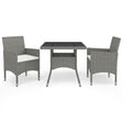 Enjoy gatherings in a breeze with our 3-piece dining set! This dining set can effortlessly accommodate the needs of your guests while creating the perfect outdoor dining setting! Made of UV protected PE rattan with a strong steel frame in powder-coating, this dining set is weather-resistant and sturdy. The reinforced tempered glass top creates a smooth and easy to clean surface. Each seat comes with a removable thickly padded cushion for added comfort in your lounging time. All cushion covers are removable with a zipped design. Additionally, the lightweight construction makes each piece easy to move, rearrange and transport. Note: We recommend that you cover the set during rain, snow and frost.