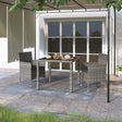 This stylish garden dining set provides you with a leisurely and comfortable time with your family and friends. Featuring a powder-coated steel frame covered with weather-resistant PE rattan with UV protection, the table and chairs are durable and stable. Designed with curved backrest and armrest, the chairs provide you with comfort. The cushions are included for added comfort and the zipped cover is removable for easy washing. The tabletop is made of reinforced tempered glass in strong support, which is easy to clean and maintain. Additionally, the lightweight construction makes each piece easy to move, rearrange and transport. Note: In order to extend the life of your outdoor furniture, we recommend you to clean it regularly and do not leave it outdoors without protection unnecessarily.Clean: Use a mild soap solution.Storing: If possible, store in a cool, dry place indoors. If the product is stored outdoors, protect it with a waterproof cover. Wipe and dry the excess water or snow from flat surfaces after a rain or snowfall. Allow sufficient air circulation to avoid moisture-related damage.