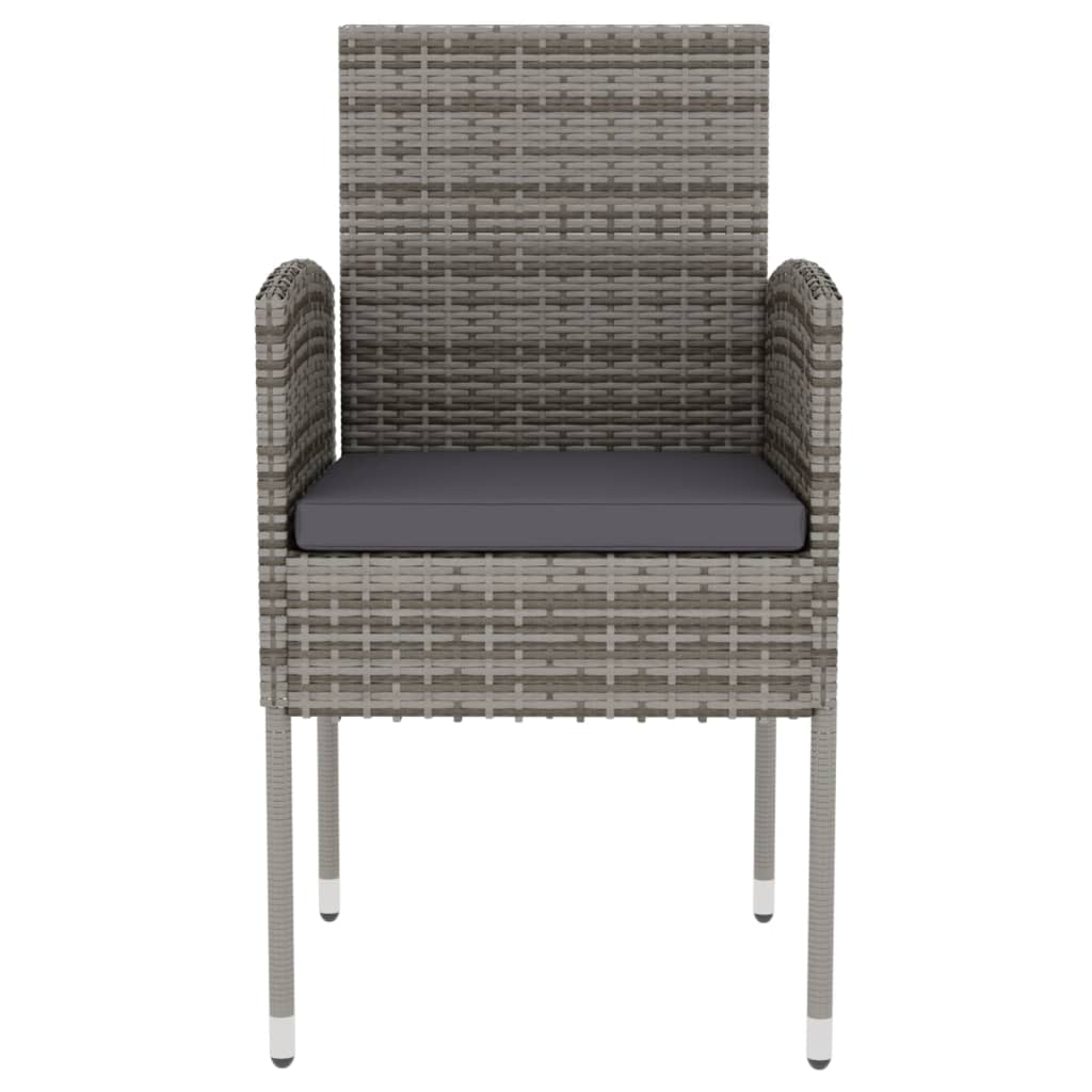 Enjoy a nice meal or afternoon tea in your outdoor space with this poly rattan garden dining set! Featuring an elegant design, it will become the focal point of your garden and patio! The practical outdoor dining set has a powder-coated steel frame covered with PE rattan, making it strong and sturdy. Thanks to their lightweight construction, all items are easy to move. The table is excellent for keeping drinks and food within reach. In addition, the thick, removable seat cushions are highly cosy. Note: In order to extend the life of your outdoor furniture, we recommend you to clean it regularly and do not leave it outdoors without protection unnecessarily.Clean: Use a mild soap solution.Storing: If possible, store in a cool, dry place indoors. If the product is stored outdoors, protect it with a waterproof cover. Wipe and dry the excess water or snow from flat surfaces after a rain or snowfall. Allow sufficient air circulation to avoid moisture-related damage.