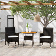 Enjoy a nice meal or afternoon tea in your outdoor space with this garden dining set! Featuring an elegant design, it will become the focal point of your garden and patio! Featuring a powder-coated steel frame wrapped with poly rattan, the outdoor dining set is durable. The tabletop is made of solid acacia wood, a hardwood with dense grains. Additionally, the thickly padded cushions provide ultimate comfort during your sitting time. Note: In order to extend the life of your outdoor furniture, we recommend you to clean it regularly and do not leave it outdoors without protection unnecessarily.Clean: Use a mild soap solution.Storing: If possible, store in a cool, dry place indoors. If the product is stored outdoors, protect it with a waterproof cover. Wipe and dry the excess water or snow from flat surfaces after a rain or snowfall. Allow sufficient air circulation to avoid moisture-related damage.