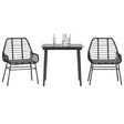 This garden dining set is a great choice for al fresco dining or just relaxing in the garden, backyard, or on the patio. Durable material: PE rattan, also known as poly rattan, is a strong, low-maintenance synthetic material that looks like natural rattan. It's lightweight, easy to clean, and commonly used for outdoor furniture due to its durability and weather-resistant properties.Robust and stable frame: The powder-coated steel frame is strong, stable, durable, and resistant to corrosion and harsh weather, ensuring long-lasting performance.Practical backrest and armrest: This garden chair features a backrest and two armrests that offer optimal support and comfort for users.Removable and washable cover: These seat cushions feature removable covers for easy washing and maintenance.Glass tabletop: The outdoor table's top is made from strong and durable tempered glass, making it easy to clean with a damp cloth and adding a touch of elegance to your outdoor space. Good to know:To make sure your outdoor furniture stays beautiful, we recommend protecting it with a waterproof cover.