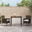 This stylish garden dining set provides you with a leisurely and comfortable time with your family and friends. Weather-resistant material: PE rattan, also known as poly rattan, is weather resistant and easy to clean. It remains beautiful on the outside for a long period of time. It offers great quality, convenience and an aesthetic look. Sturdy and stable frame: The powder-coated steel frame of the dining set ensures sturdiness and stability. Comfortable seat experience: The thickly padded cushions of the dining chairs provide the ultimate comfort for your sitting time.Practical table: The smooth tabletop of the dining table is made of tempered glass which is easy to clean with a damp cloth. Additionally, the sturdy tabletop is perfect for placing meals, drinks, and other decorative items.Flexible design: Thanks to the lightweight construction, these garden dining chairs are easy to move. Note:To make sure your outdoor furniture stays beautiful, we recommend protecting it with a waterproof cover.