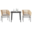 This garden dining set is a great choice for al fresco dining or just relaxing in the garden, backyard, or on the patio. Durable material: PE rattan, also known as poly rattan, is a strong, low-maintenance synthetic material that looks like natural rattan. It's lightweight, easy to clean, and commonly used for outdoor furniture due to its durability and weather-resistant properties.Robust and stable frame: The powder-coated steel frame is strong, stable, durable, and resistant to corrosion and harsh weather, ensuring long-lasting performance.Practical backrest and armrest: This garden chair features a backrest and two armrests that offer optimal support and comfort for users.Removable and washable cover: These seat cushions feature removable covers for easy washing and maintenance.Glass tabletop: The outdoor table's top is made from strong and durable tempered glass, making it easy to clean with a damp cloth and adding a touch of elegance to your outdoor space. Good to know:To make sure your outdoor furniture stays beautiful, we recommend protecting it with a waterproof cover.