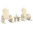 Enjoy your leisure time with this wooden garden lounge set in Adirondack style. Solid fir wood: Solid fir wood is a beautiful and durable material that maintains its integrity even when exposed to moisture. It does not dry out or warp, making it a reliable choice.Comfortable seating: The garden lounge chair features an ergonomic seat and angled backrest for optimal seating comfort. Additionally, the wagon-wheel shaped armrests provide comfortable space to rest your arms.Rocking design: Relax by sitting comfortably on this Adirondack rocking chair while enjoying a calming, gentle rocking motion.Practical table: The coffee table is perfect for placing your drinks, food and other decorative items. Good to know:To make sure your outdoor furniture stays beautiful, we recommend protecting it with a waterproof cover.