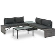 This poly rattan lounge set consists of 1 coffee table, 1 corner table, 2 sofas, 4 pillows and 4 seat cushions. It will offer a stylish seating area for your garden or patio. The set is easy to clean, hard wearing and suitable for daily outdoor use due to the weather-resistant PE rattan. The powder-coated steel frame makes the set sturdy and stable. Meanwhile, since the construction is lightweight, all items are easy to move around to suit any setting. The seat is delivered with highly comfortable, thickly-padded seat cushions and back cushions for ultimate comfort. The low-maintenance polyester fabric cushion covers can be removed and washed easily. The set is easy to assemble. Note: We recommend covering the set during rain, snow and frost for its best service to last.