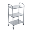 Its sturdy construction and locking wheels ensure against accidental bumps knocking food and dishes to the floor. Two handles provide extra control. With three tiers of shelves, you can feed a crowd – or clean up after them without time-wasting return trips, saving you or your waitstaff valuable time. Don't waste a minute more on extra trips to the kitchen. Order your kitchen trolley today!