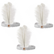 Triple Set of 1920s Flapper Headbands with Feather and Sequin for Charleston Gatsby Costume - White