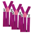 3x Mens Suspenders Braces Adjustable Strong Clip On Elastic Formal Wedding Slim - Hot Pink (Glitter)