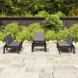 This garden lounge set is an excellent choice for relaxing and enjoying the weather, taking a nap, or chatting with your family or friends. The garden lounge set is made of plastic, making it easy-to-clean and stable. With a sturdy tabletop, the table is ideal for keeping food and drinks within reach. The backrests and the cushions add the outdoor seating's comfort.