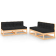 This pinewood garden lounge set is an ideal choice for you to relax and enjoy the weather, take a nap, or chat with your family or friends. The sofa set is made of solid pinewood, making it sturdy and stable. This set has a solid construction and requires little maintenance. The cushions add extra comfort. This lounge set will add a touch of rustic charm to your outdoor living space. Note: In order to extend the life of your outdoor furniture, we recommend you to protect it with a waterproof cover.