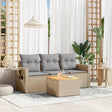 This garden sofa set is the perfect addition to your backyard, terrace, or patio, providing a comfortable and inviting space for chatting with family and friends or simply relaxing and enjoying the outdoors. Durable material: PE rattan, also known as poly rattan, is a strong, low-maintenance synthetic material that looks like natural rattan. It's lightweight, easy to clean, and commonly used for outdoor furniture due to its durability and weather-resistant properties.Storage function with water-resistant bag: Each garden seat features storage space under the seat, complete with a water-resistant bag for storing cushions, toys, and other items. The inner bags have a top cover and can be securely fastened to the seats with hook-and-loop fasteners for added stability.Stable and easy-to-clean tabletop: This garden table has an acacia wood top that is sturdy, durable, and easy to clean with a damp cloth.Convenient side table: This outdoor furniture features foldable side tables with a gas spring on the armrests, providing convenient spots to keep your essentials within easy reach.Modular design: This outdoor furniture set has a modular design, making it completely flexible and easy to move around, so you can create a customised outdoor furniture arrangement. Good to know:To make sure your outdoor furniture stays beautiful, we recommend protecting it with a waterproof cover.