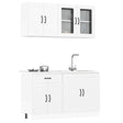 This 4-piece kitchen cabinet set, with its elegant design, optimises your kitchen space and provides ample storage space for your personal belongings! Stable and durable material: Engineered wood is a durable and stable material with a smooth surface that is resistant to moisture, warping, and splitting, making it a reliable choice for a variety of projects.Ample storage space: The kitchen cabinet set has many compartments, and offers sufficient space to store bowls, plates, pots, and other kitchen appliances.Adjustable feet: The bottom cabinets feature adjustable feet that can be adjusted in height to suit your kitchen layout.Easy to maintain: Thanks to its smooth surface, these kitchen cabinets are easy to clean with a damp cloth and require less maintenance. Warning:To prevent it from tipping over, this product must be used with the provided wall attachment device. Good to know:Screw(s) and plug(s) for inside the wall are not included. Seek and use screw(s) and plug(s) suitable for your walls. If you are uncertain, seek professional advice. Read and follow each step of the instruction carefully.The worktop, sink and faucet are not included in the delivery.