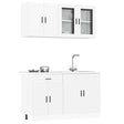 This 4-piece kitchen cabinet set, with its elegant design, optimises your kitchen space and provides ample storage space for your personal belongings! Stable and durable material: Engineered wood is a durable and stable material with a smooth surface that is resistant to moisture, warping, and splitting, making it a reliable choice for a variety of projects.Ample storage space: The kitchen cabinet set has many compartments, and offers sufficient space to store bowls, plates, pots, and other kitchen appliances.Adjustable feet: The bottom cabinets feature adjustable feet that can be adjusted in height to suit your kitchen layout.Easy to maintain: Thanks to its smooth surface, these kitchen cabinets are easy to clean with a damp cloth and require less maintenance. Warning:To prevent it from tipping over, this product must be used with the provided wall attachment device. Good to know:Screw(s) and plug(s) for inside the wall are not included. Seek and use screw(s) and plug(s) suitable for your walls. If you are uncertain, seek professional advice. Read and follow each step of the instruction carefully.The worktop, sink and faucet are not included in the delivery.