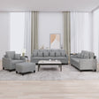 This sofa set is an excellent place for chatting, reading, watching TV or just relaxing. It is meant to be a focal point in your home. Durable fabric: The fabric features a simple and clean look while remaining breathable and long-lasting.Sturdy and stable frame: The plywood and metal frame of the sofa seating ensures sturdiness and stability.Comfortable seat experience: The sofa is highly comfortable with the thickly padded seat, armrests and back pillows.Practical couch pillows: These square throw pillows not only spruce up your decor, but can also add extra comfort when you are seated or lying.Versatile footstool: The footstool is suitable for resting your feet when you lie on a sofa, or offering you an additional seat in your room. Additionally, the simple design and compact size make it ideal for almost all your living spaces.