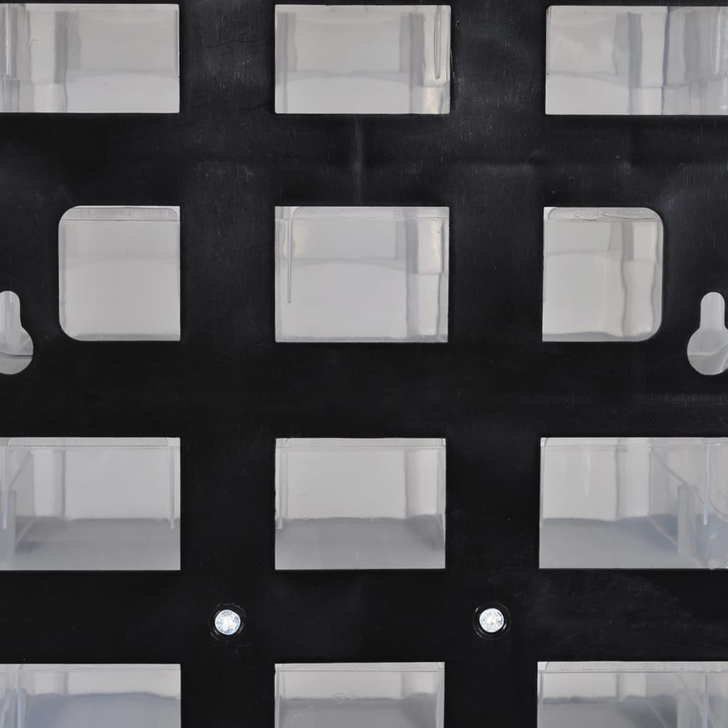 This 41-Drawer Plastic tool box provides a great way to organize your work area with 40 small drawers and a large one. It is perfect for keeping all kinds of small things, such as small-sized machine components, accessories, or even your DIY works. You could choose either the large drawer or small one according to the size of the things you want to put in. Durable transparent plastic ensures visibility of the items being stored in the drawer. There’re 2 small holes on the back of the box for you to hitch it to wall or other surface.
