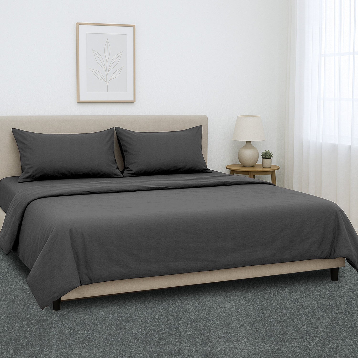 The set includes a fitted sheet, a flat sheet, and two matching pillowcases - everything you need to transform your bedroom into a serene retreat.