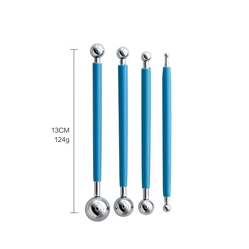 4X Fondant Cake Flower Decorating Clay Sugarcraft Ball Engraved Embossing Stick - Hot pink