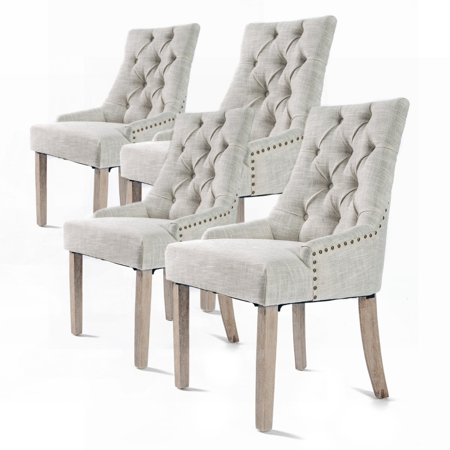 Padded with 13cm high resilience foam, this thick cushioned seat is wider than normal chairs. All these features will no doubt give top maximum comfort. Elegant upholstered, together with a deep tufting design and brass studding on edges, this French provincial style chair will definitely give you and your family and friends additional enjoyment, comfort and pleasure.