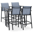 This garden bar set will make a great addition to your outdoor living space! With a sturdy steel frame, the outdoor dining set is highly durable and stable. Thanks to the thick tempered glass tabletop, the table is easy to clean with a damp cloth and suitable for outdoor use. Featuring the soft-to-the-touch and weather-resistant textilene, the chairs are comfortable to seat on. Additionally, the chairs are lightweight and easy to move around. Note: In order to extend the life of your outdoor furniture, we recommend you to clean it regularly and do not leave it outdoors without protection unnecessarily.Clean: Use a mild soap solutionStoring: If possible, store in a cool, dry place indoors. If the product is stored outdoors, protect it with a waterproof cover. Wipe and dry the excess water or snow from flat surfaces after a rain or snowfall. Allow sufficient air circulation to avoid moisture-related damage.